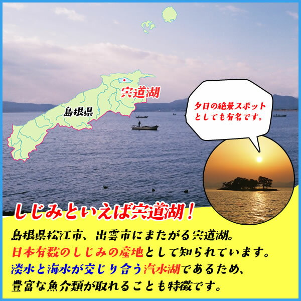 商品 冷凍殻付しじみ(加熱用) 内容:500g×2パック 原材料:しじみ 原産地:島根県宍道湖 賞味期限:冷凍【未解凍】:1ヶ月(解凍後冷蔵:解凍当日) ※賞味期限に関してのご注意 各商品のパッケージには個別の賞味期限が記載されているものがございますが、お届けした外箱に添付されたシールに記載されている当店の賞味期限とは異なる商品がございます。