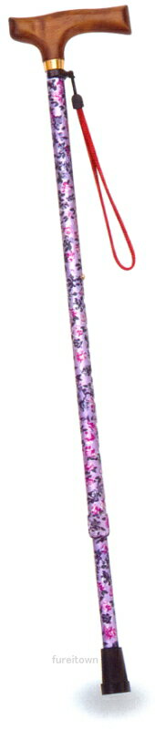 【木目調アルミ杖 伸縮型 長さ10段階調節可 豊通オールライフ ストラップ付き (歩行補助用品/介護用品)】