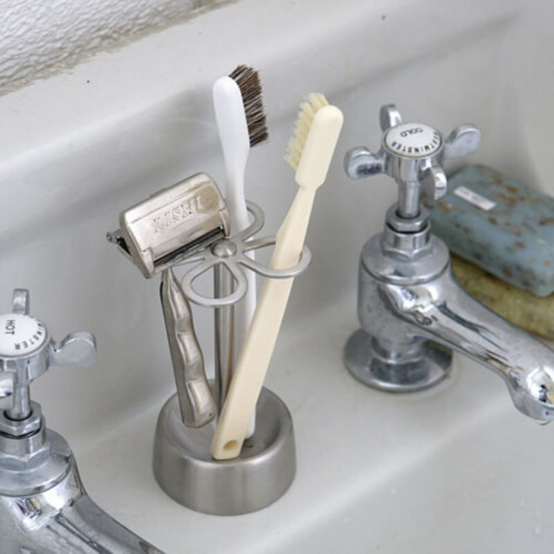 清潔感のあるステンレス製の、お花型歯ブラシホルダー。